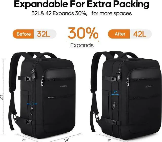 LARGE CAPACITY AND EXPANDABLEThis suitcase backpack for travel features zipper expansion, which can expand up to 42L for 3~7 days of travel essentials. The spacious main compartment with straps to secure travel supplies, one separate laptop compartment for a 17-inch laptop, and a hidden anti-theft pocket on the back protect your valuable items. It's perfect for travel, business, camping, or cruises with a 20*14*7" size. Please check the size before purchasing.