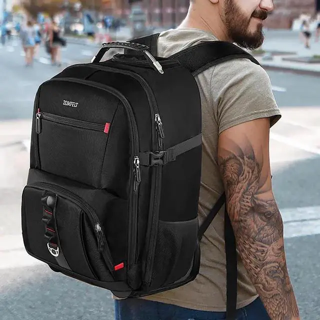 ZOMFELT Rolling Backpack, Travel Backpack with Wheels, Carry on Backpacks with 3 Packing Cubes, 17.3 Inch Wheeled Laptop Backpack for Men Women Adults to Travel Work Business Black