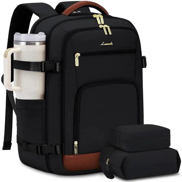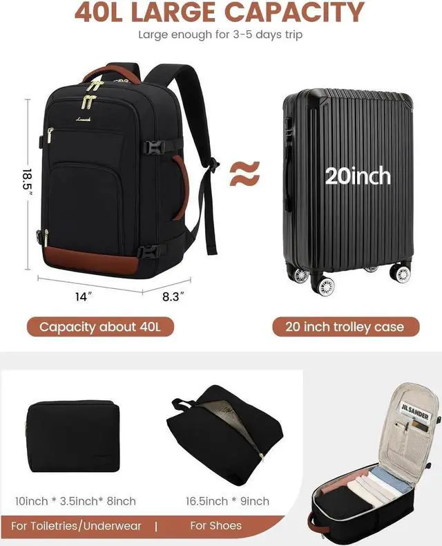 LOVEVOOK Carry On Travel Backpack For Women Men Flight Approved, 40L Personal Item Backpack for Airplanes, Business Weekender Overnight Daypack Fits 17 Inch Laptop, With 2 Packing Cubes, Black-Brown