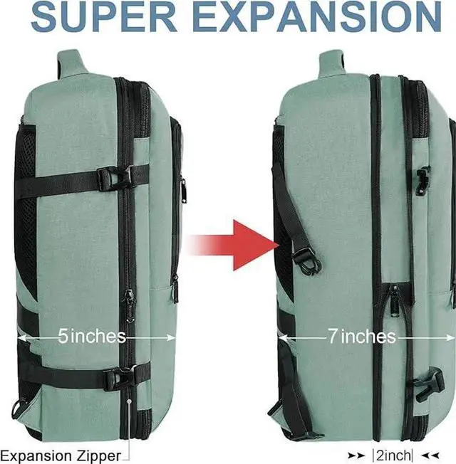 Vancropak Travel Bag, Large 40L Carry on Backpack Airline Approved Expandable Suitcase Daypack, Water Resistant Travel Backpack Overnight Lightweight Luggage Weekender Bag for Flight Men Women, Cyan