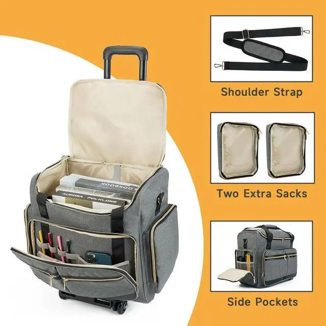 MULTIPLE CARRYING OPTIONS: Our rolling tote bag features a thick handle, making it perfect as a teacher tote. Additionally, it includes a detachable, adjustable shoulder strap for easy use as a single-shoulder bag when you're on the go