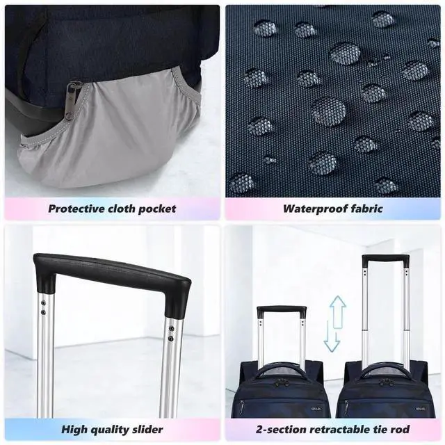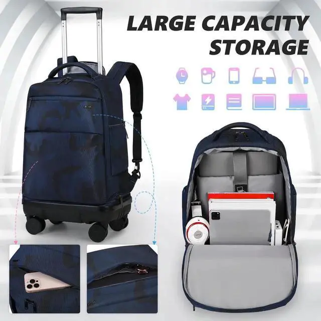 Ailouiskids Rolling Backpack with Removable Wheels, 18 inch Laptop Backpack with Wear-Resistant Chassis Carry on Travel Backpack Water Resistant Wheeled Backpacks for Women Men