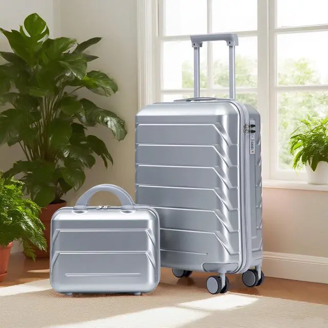 • 14"/20" 2 pcs/set in ABS Spinner Wheel Luggage, with Combination Lock,14" Cosmetic Case (Silver)