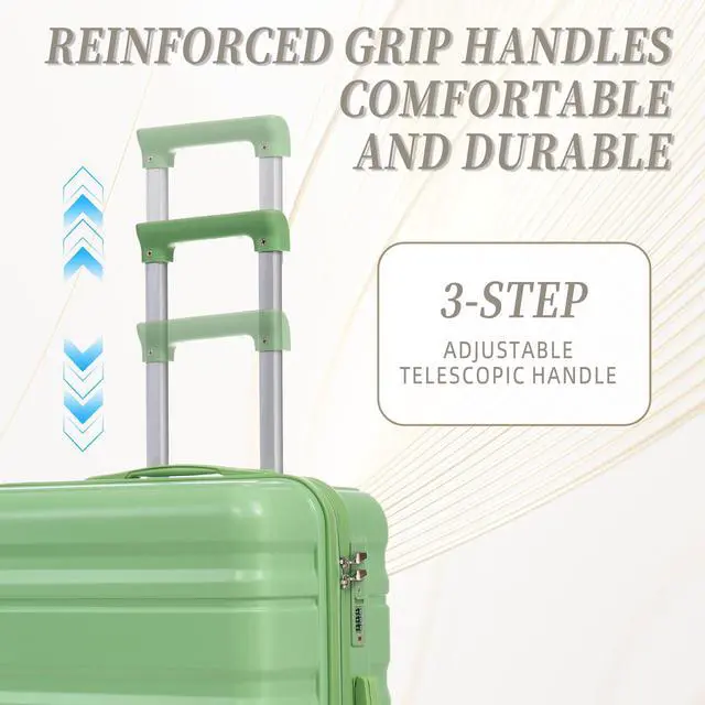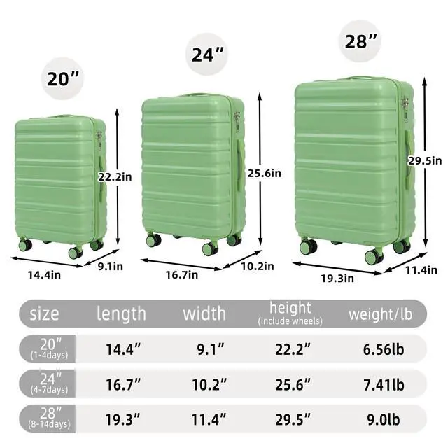• 20"/24"/28" 3 pcs/set in ABS Spinner Wheel Luggage, Carry on Suitcase, Matching Color, Combination Lock (Green)