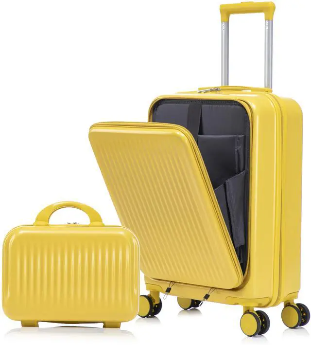 14"/20" 2 pcs/set in ABS Spinner Wheel Luggage, with Combination Lock and Front Opening Design, 14" Cosmetic Case (Yellow)