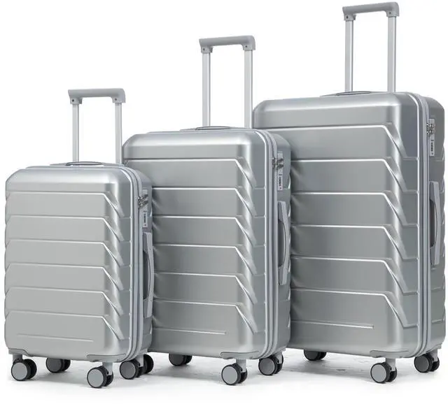 • 20"/24"/28" 3 pcs/set in ABS Spinner Wheel Luggage, Matching Color , With Combination Lock (Silver)