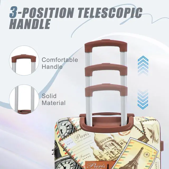 • 20"/24"/28" 3 pcs/set in PC Spinner Wheel Luggage, Carry on Suitcase, With Printed pattern and Combination Lock (City Stamps)