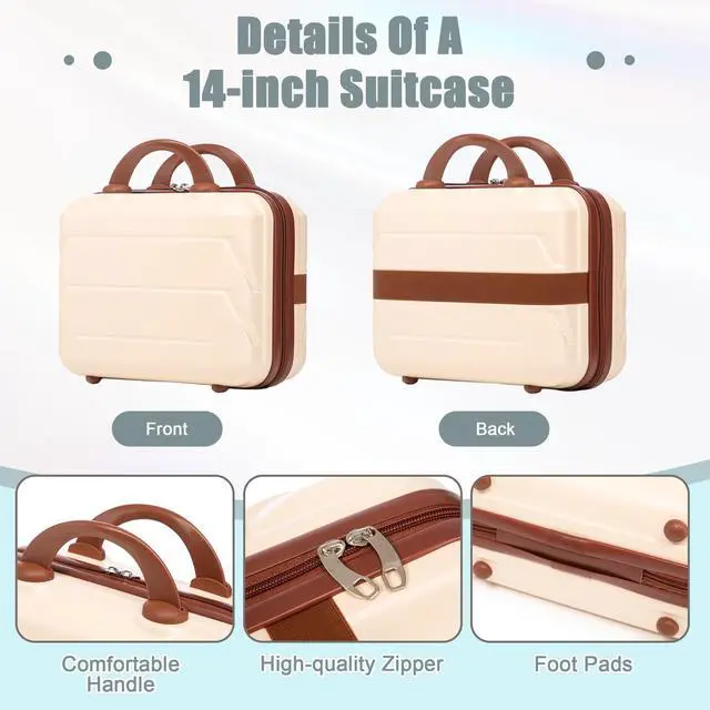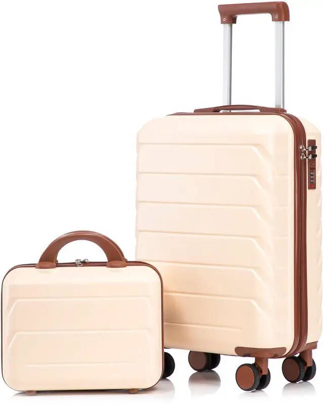 14"/20" 2 pcs/set in ABS Spinner Wheel Luggage, with Combination Lock,14" Cosmetic Case (Beige)