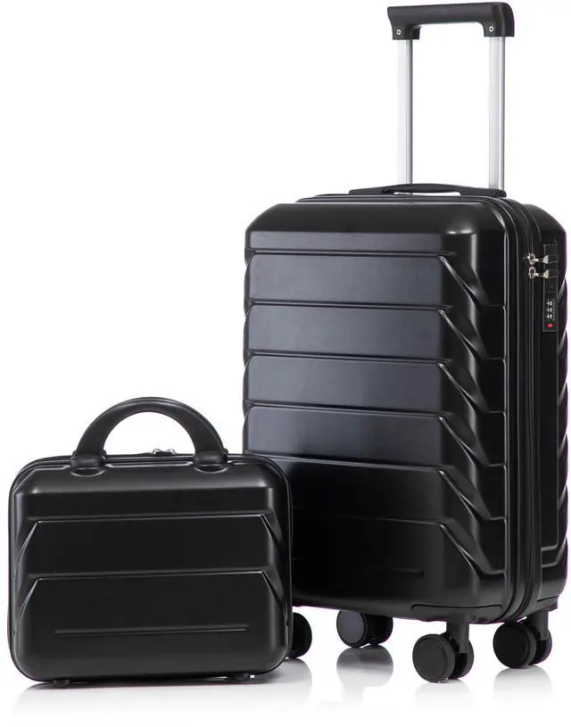 14"/20" 2 pcs/set in ABS Spinner Wheel Luggage, with Combination Lock,14" Cosmetic Case (Black)