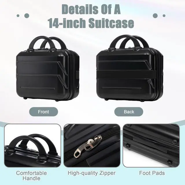 • 14"/20" 2 pcs/set in ABS Spinner Wheel Luggage, with Combination Lock,14" Cosmetic Case (Black)
