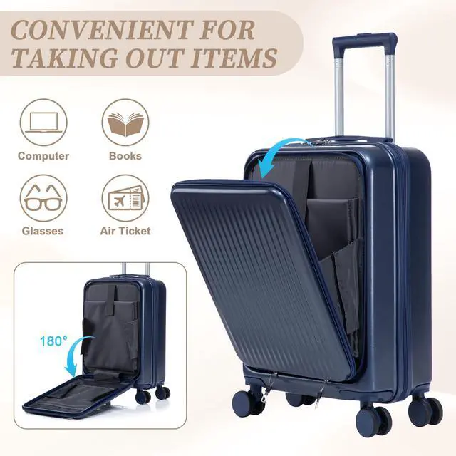 • 14"/20" 2 pcs/set in ABS Spinner Wheel Luggage, with Combination Lock and Front Opening Design, 14" Cosmetic Case (Navy)