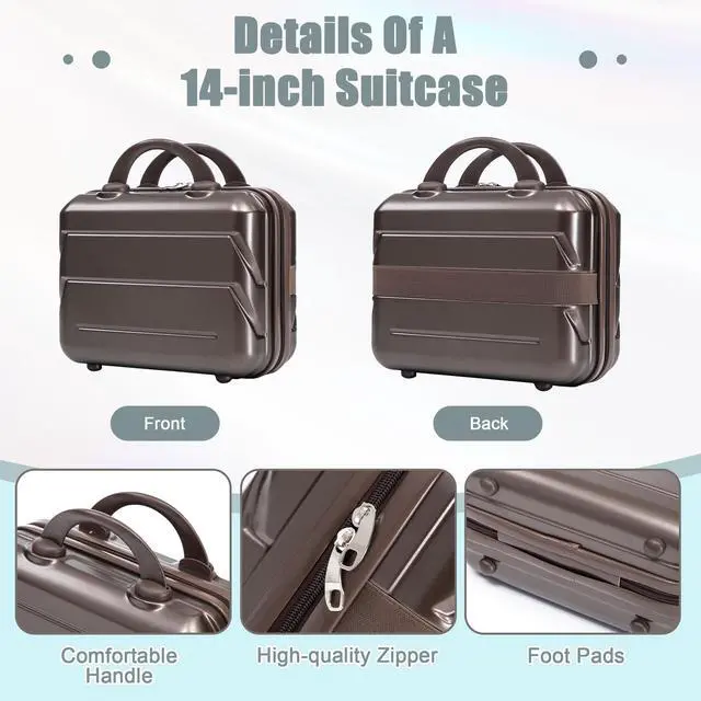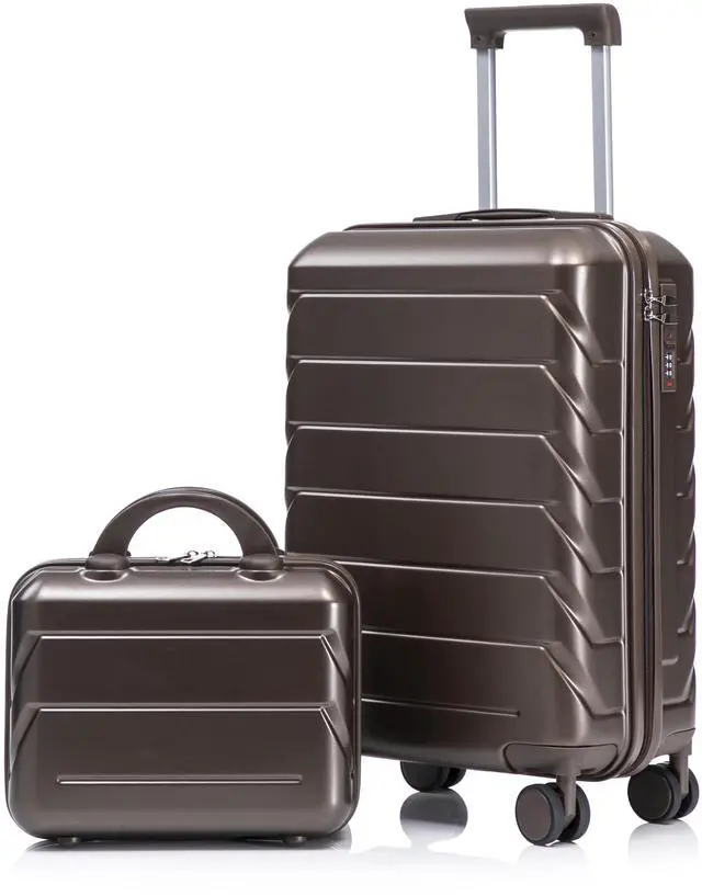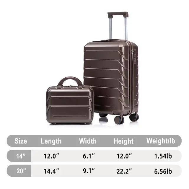 14"/20" 2 pcs/set in ABS Spinner Wheel Luggage, with Combination Lock,14" Cosmetic Case (Brown)