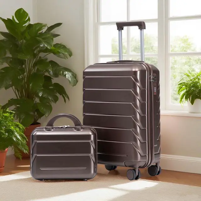 • 14"/20" 2 pcs/set in ABS Spinner Wheel Luggage, with Combination Lock,14" Cosmetic Case (Brown)