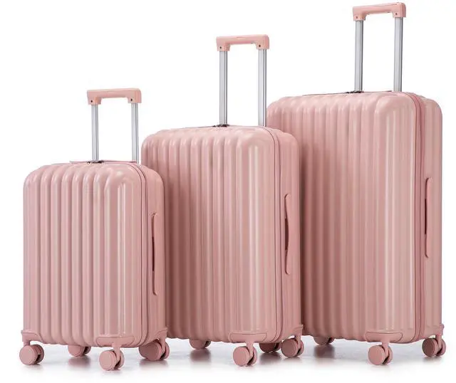 20"/24"/28" 3 pcs/set in ABS Spinner Wheel Luggage, Carry on Suitcase, with Cup Holder & USB Port & Phone Holder (Pink)