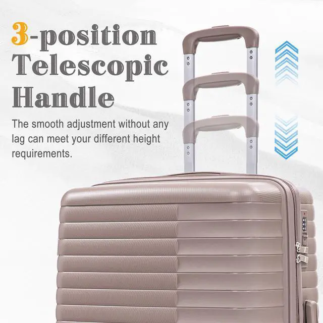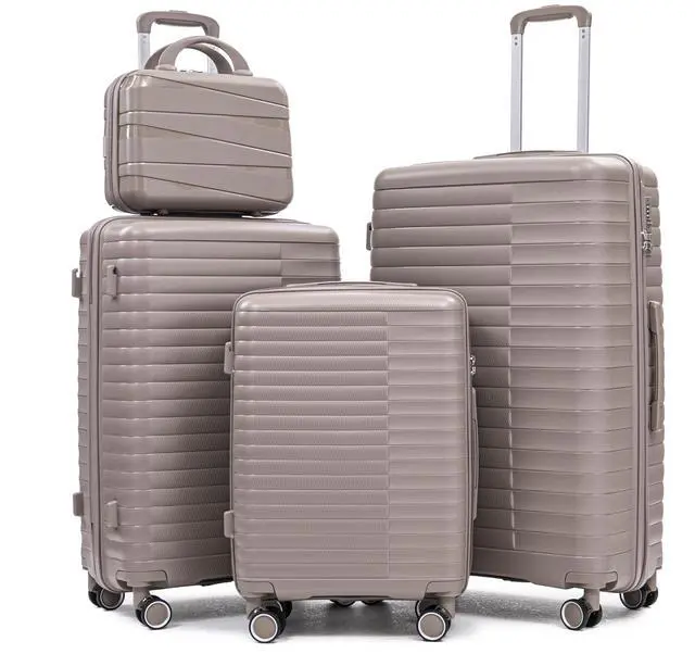 • 14"/20"/24"/28" 4 pcs/set in PP Spinner Wheel Luggage, Carry on Suitcase, Iron Pull Rod, Combination Password Lock, 14" Cosmetic Case (Champagne)