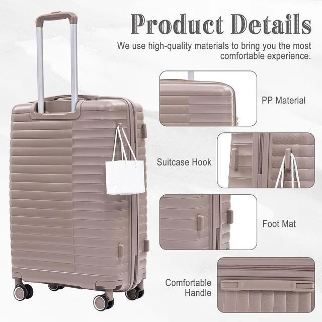 14"/20"/24"/28" 4 pcs/set in PP Spinner Wheel Luggage, Carry on Suitcase, Iron Pull Rod, Combination Password Lock, 14" Cosmetic Case (Champagne)