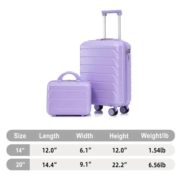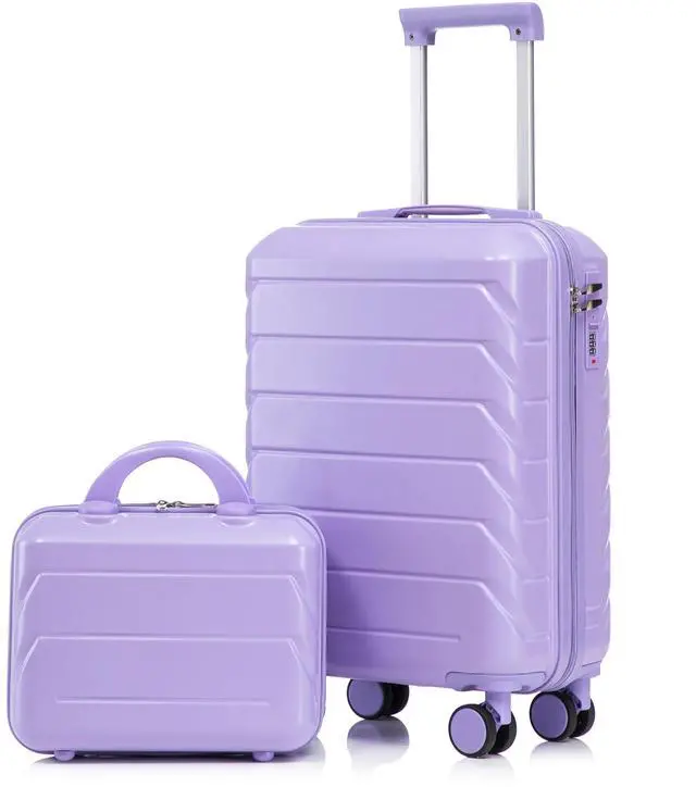 14"/20" 2 pcs/set in ABS Spinner Wheel Luggage, with Combination Lock,14" Cosmetic Case (Blue+Purple)