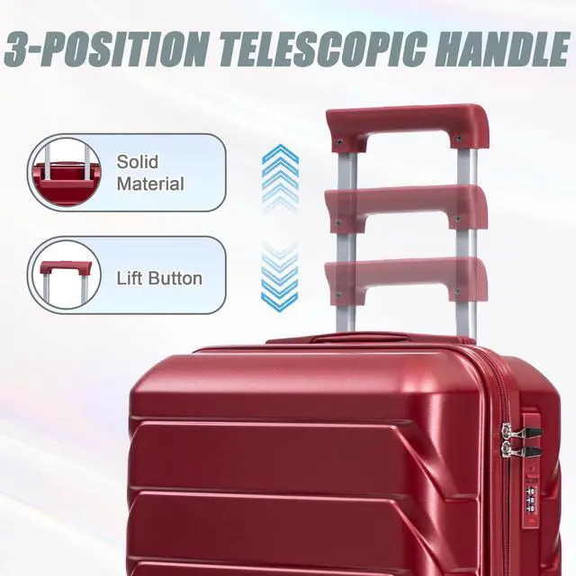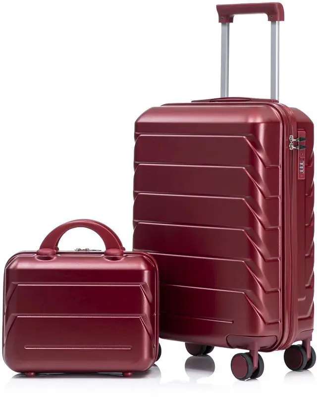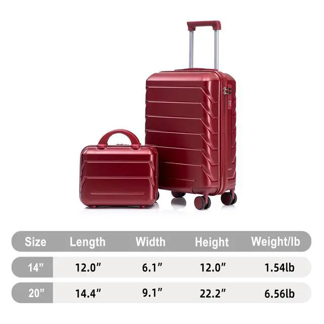 14"/20" 2 pcs/set in ABS Spinner Wheel Luggage, with Combination Lock,14" Cosmetic Case (WINE RED)