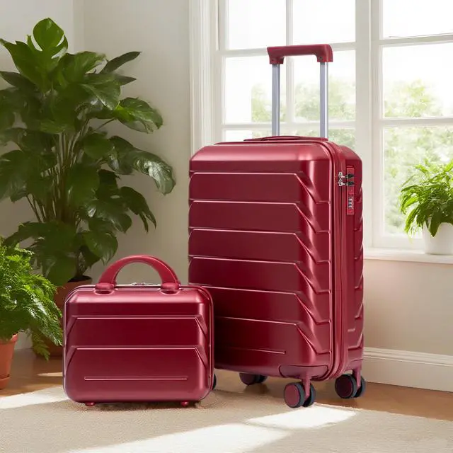 • 14"/20" 2 pcs/set in ABS Spinner Wheel Luggage, with Combination Lock,14" Cosmetic Case (WINE RED)
