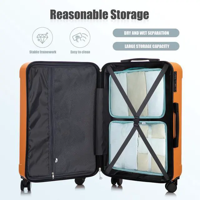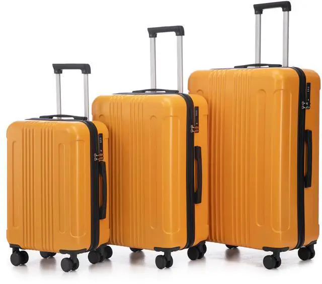 • 20"/24"/28" 3 pcs/set in ABS Spinner Wheel Luggage, Carry on Suitcase, Matching Color, TSA Combination Lock (Black+Orange)