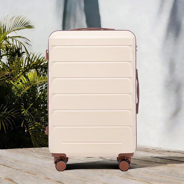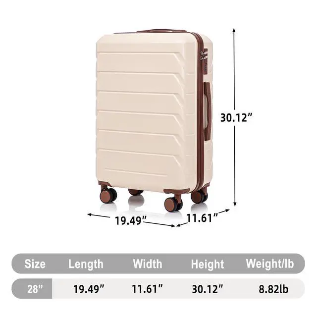 • 28 Inch ABS Hard Shell Large Travel Checked Luggage - Scratch Resistant Surface Four Multi-Directional Wheels, With Combination Lock and Side Hooks .(Beige)