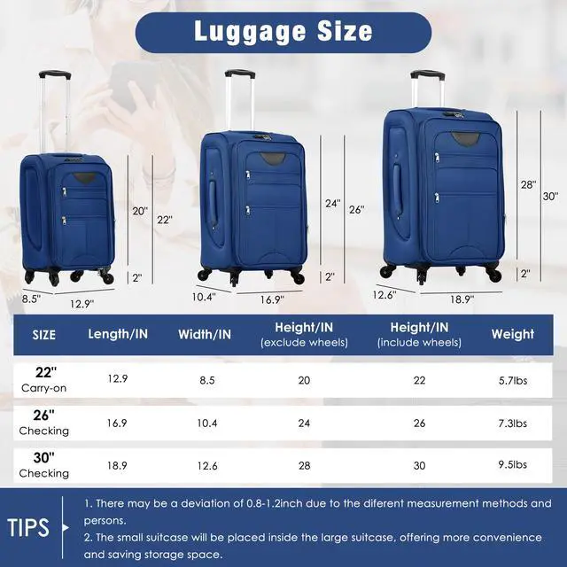 Expanable Spinner Wheel 3 Piece Luggage Set Lightweight Suitcase with Duffel Bag
