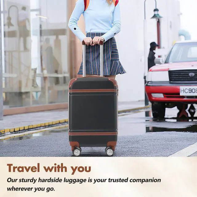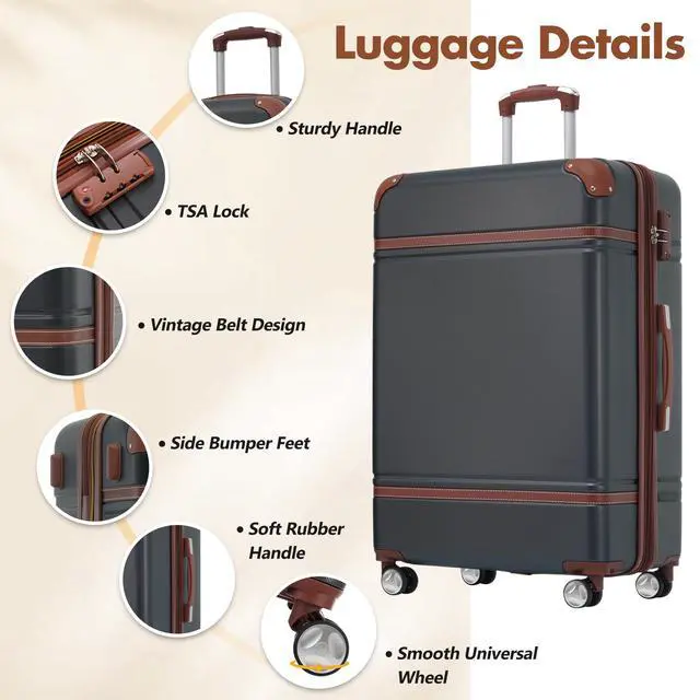 • Hardshell Luggage Sets with Bags Lightweight Suitcase Double Spinner Wheels with TSA Lock ,Single Vintage Luggage 28 IN,Black