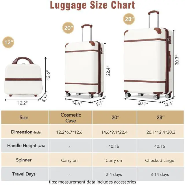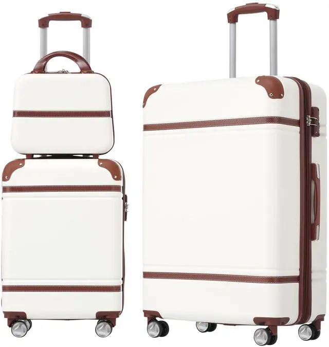 • Hardshell Luggage Sets 3 Pieces 20"+28" Luggages and Cosmetic Case Spinner Suitcase with TSA Lock Lightweight,White