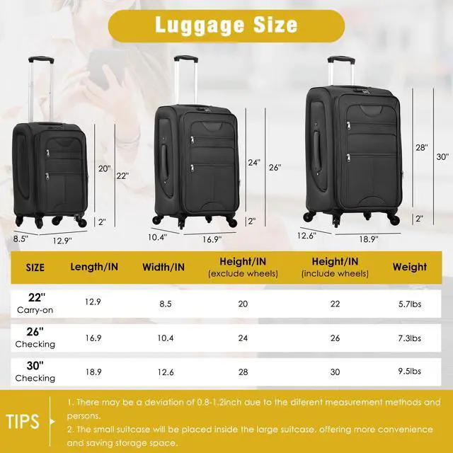 Expanable Spinner Wheel 3 Piece Luggage Set Lightweight Suitcase with Duffel Bag