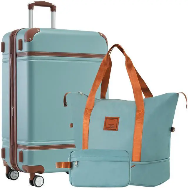 • Hardshell Luggage Sets with Bags Lightweight Suitcase Double Spinner Wheels with TSA Lock ,Single Vintage Luggage 28 IN,Green