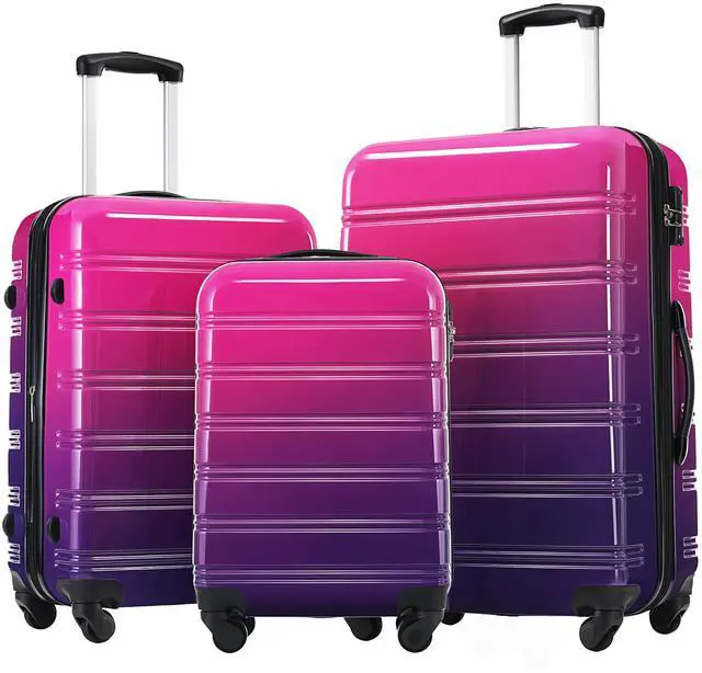• Hardshell Luggage Sets 3 Piece Gradient Color Expandable Suitcase with Spinner Wheels and TSA Lock Lightweight 20" 24" 28" Available,Purple and Pink