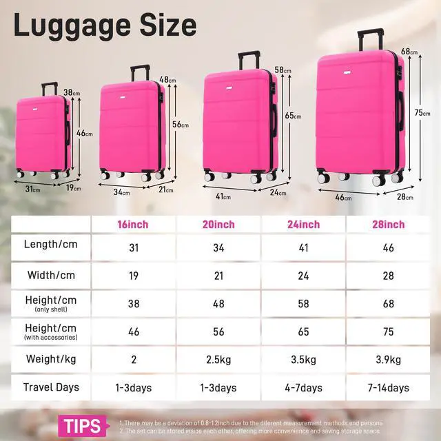 • Hardshell Luggage Sets 6 Piece with 2 Bags,Carry on Suitcase with Handle Password Lock Double Spinner Wheels, Lightweight 16"+20"+24"+28" Luggages