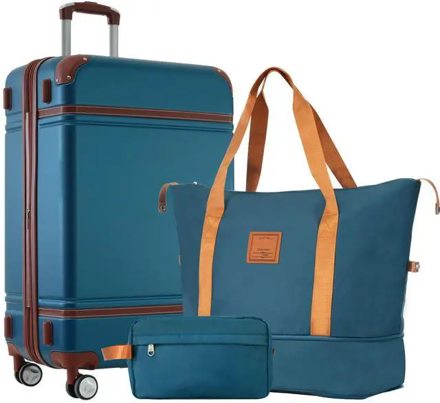• Hardshell Luggage Sets with Bags Lightweight Suitcase Double Spinner Wheels with TSA Lock ,Single Vintage Luggage 24 IN,Blue