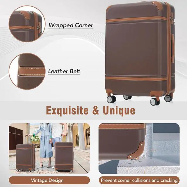 • Hardshell Luggage Sets 3 Pieces 20"+24" Luggages and Cosmetic Case Spinner Suitcase with TSA Lock Lightweight,Brown
