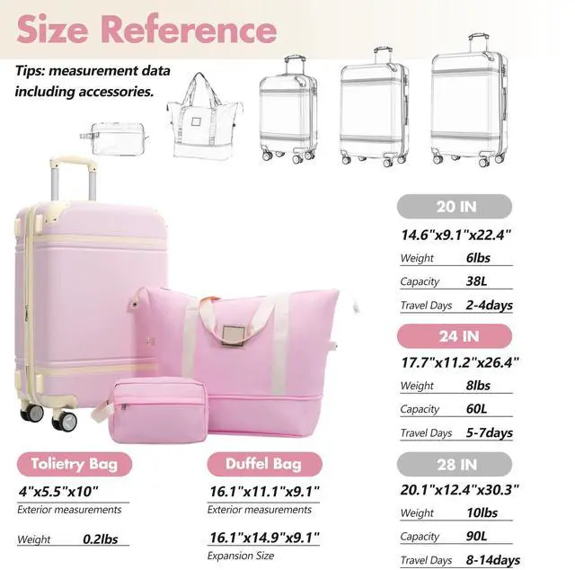 • Hardshell Luggage Sets with Bags Lightweight Suitcase Double Spinner Wheels with TSA Lock ,Single Vintage Luggage 24 IN,Light Pink