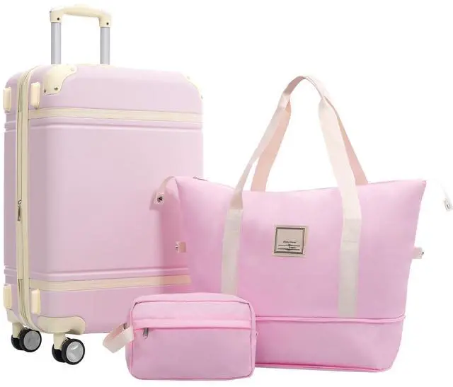 Hardshell Luggage Sets with Bags Lightweight Suitcase Double Spinner Wheels with TSA Lock ,Single Vintage Luggage 24 IN,Light Pink