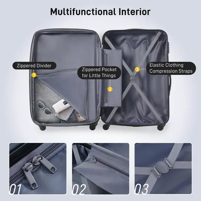 • Hardshell Luggage Sets 4 pcs + Bag Spinner Suitcase with TSA Lock Lightweight-16"+20"+24"+28" Luggages