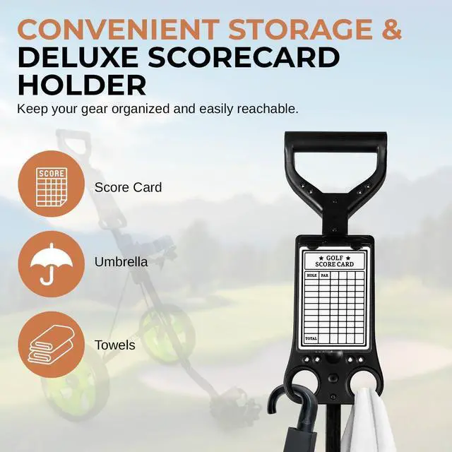 The Jovial Foldable 2-Wheel Junior Pull Cart (JOVGF52) is designed specifically for junior golfers, providing both convenience and functionality. The steel frame provides durability and strength, while the foam handle grip and ergonomic padded adjustable handle ensure comfort during use. The quick braking system offers control, and the elastic strap brackets keep your golf bag securely in place. With a compact foldable design, this cart is easy to store and transport, making it the ideal choice for young golfers looking for a reliable and efficient cart for their gear.
