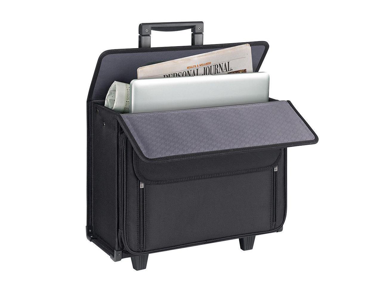 This rolling briefcase allows you to safely transport your notebook with you when you're traveling. Padded compartment holds up to 17" laptops to accommodate full-size screens.
