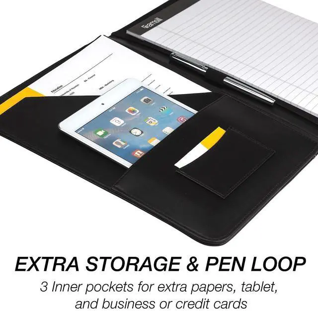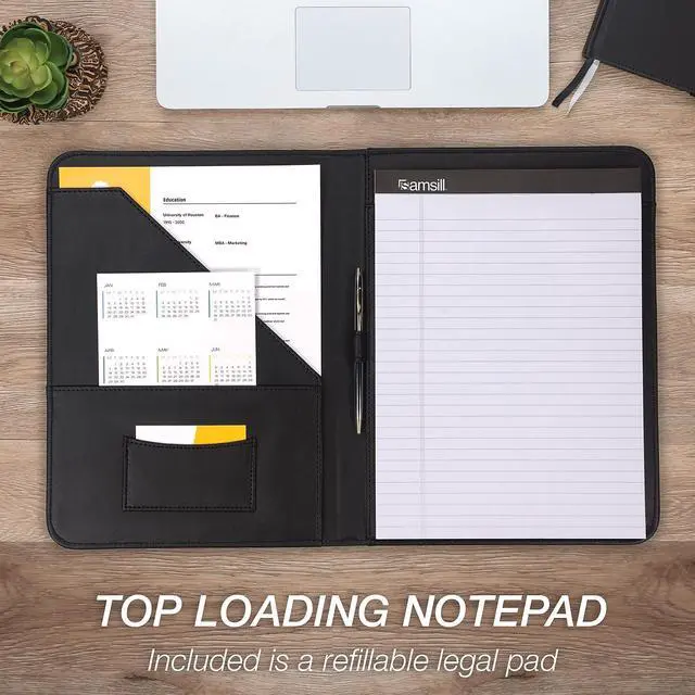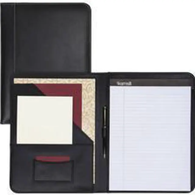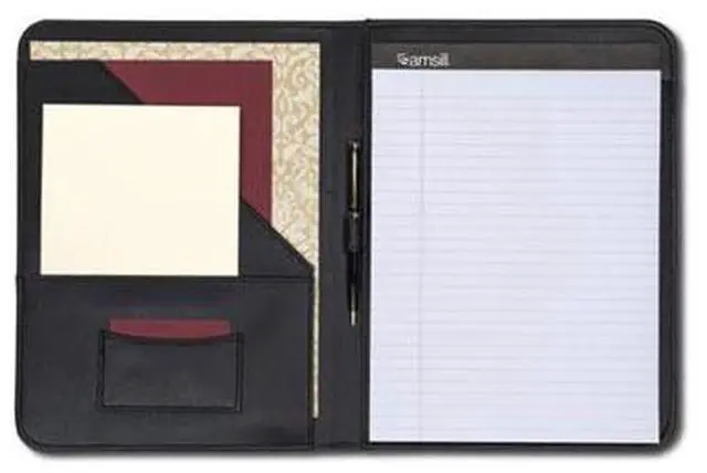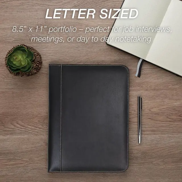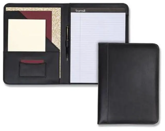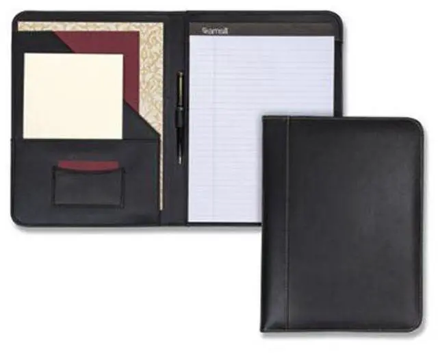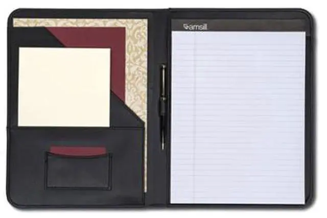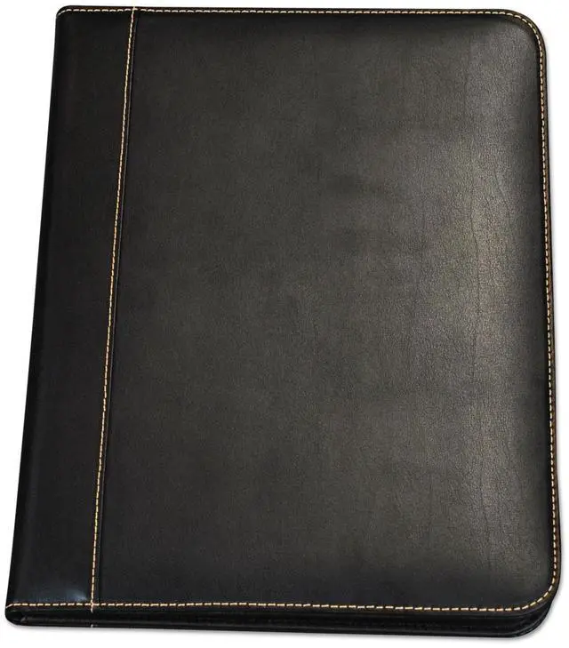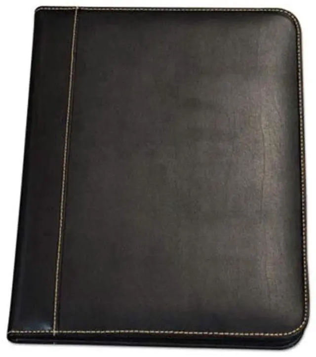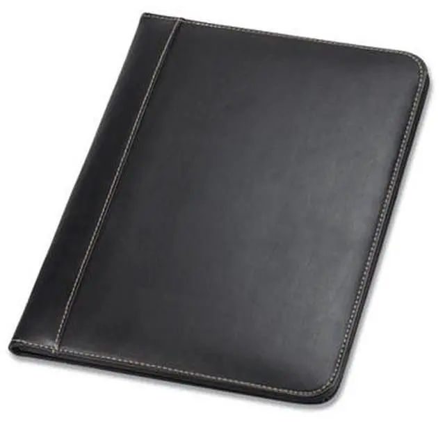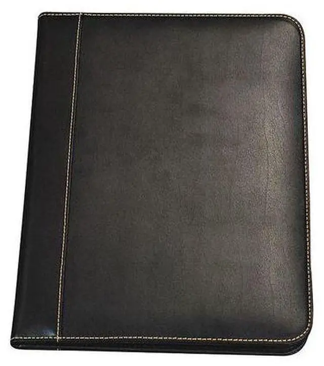 Stylish yet professional look with contrasting stitching around the edges. Smartly designed for the ultimate in functionality and convenience. Contains an interior document pocket, business card pocket, pen loop and writing pad.