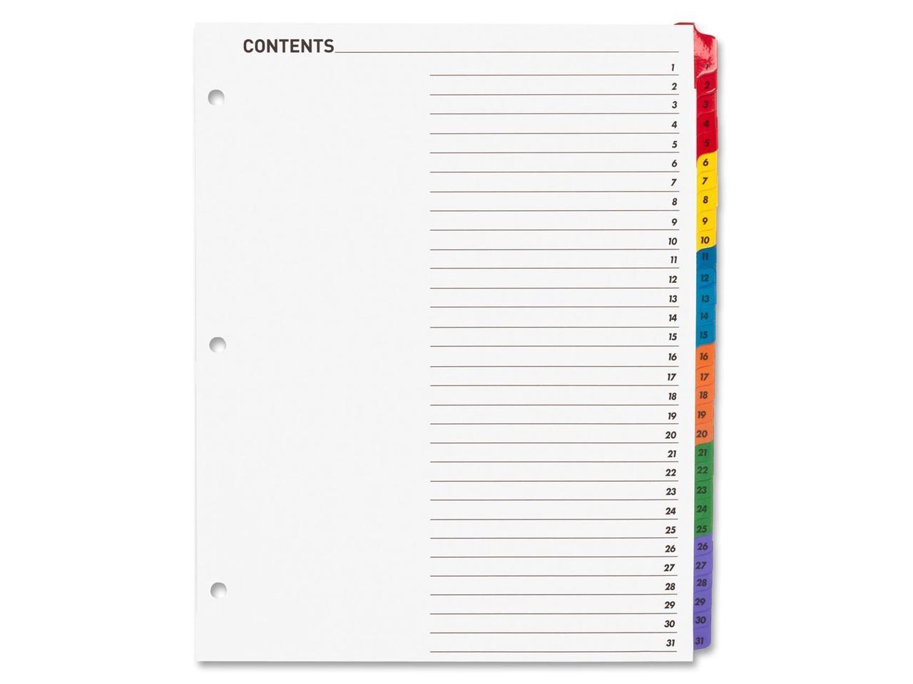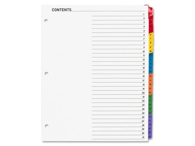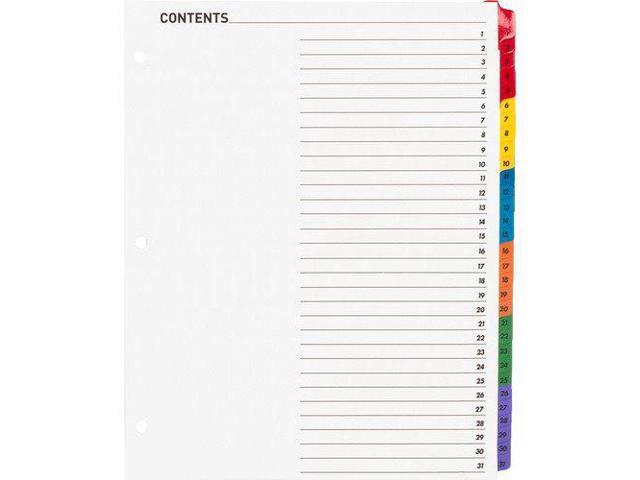 Index Dividers W/Table Of Contents, 1-31, 31 Tabs/ST, Multi