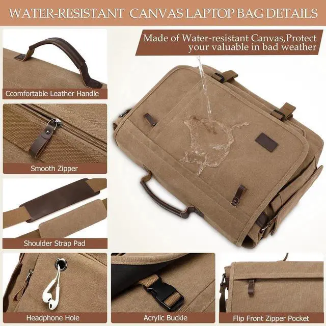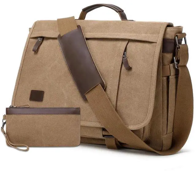 [ 2 PCS RETRO MEN'S MESSENGER BAG ] Office work bag for men is made of water repellent canvas with PU brown leather. Disordered wrinkles and scratches on surface create a vintage and wild looking. Comes with a small bag for pens, keys, mobile phone and cash, perfect for people in college, business and work.