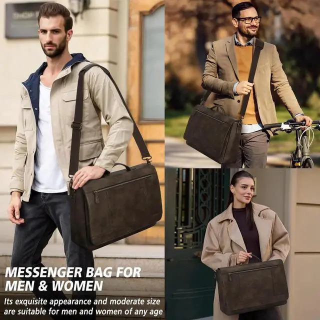 PROFESSIONAL WORK BAG: The Main compartment of the messenger bag for men is equipped with a padded laptop compartment that fits for laptop up to 15.6 inches;1 iPad pocket and 1 wall zipper pocket. Under the flap of the leather messenger bag, there is a large magnetic snap pocket(with 4 pen slots,2 slip pockets, and a removable keychain). The exterior of the leather laptop bag for men features a front zipper pocket and a back zipper pocket for easy access
