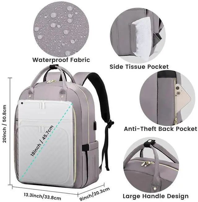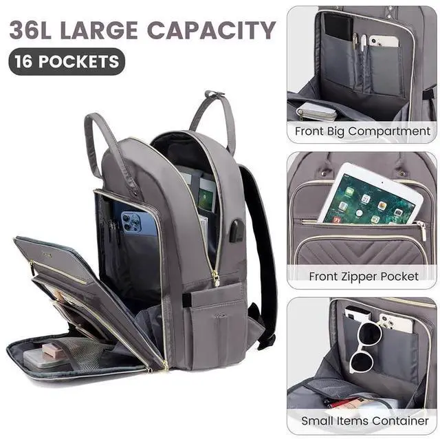 LOVEVOOK Laptop Backpack for Women, Water Resistant Travel Work Backpacks Purse Stylish Business Teacher Nurse Computer Bag with USB Charging Port,Purple Gray