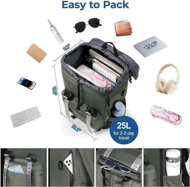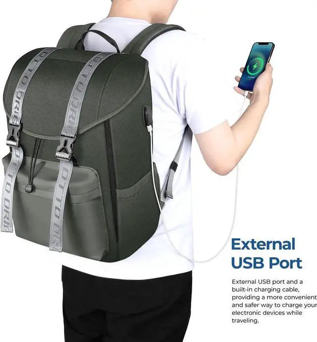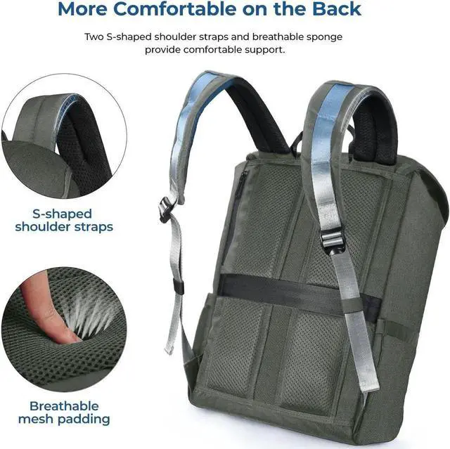Bokeer 15.6 Inch Laptop Travel Backpack, Water Resistant Anti-Theft Vintage Flap Backpack with USB Charging Port for College, Casual Daypacks, Work Bag for Men and Women, 25L, Grey