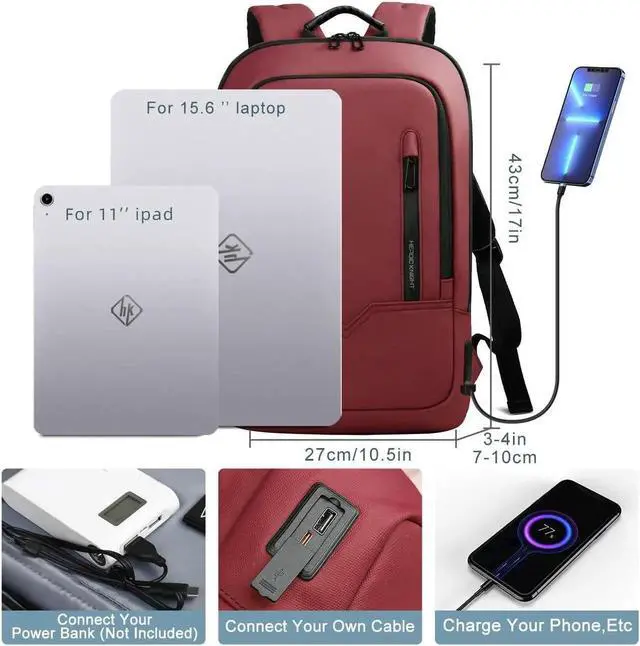 USB PORT DESIGNWith outside USB charging port and inside charging cable, this laptop bag with USB port offers an easy access to charge your phone when you are carrying a computer backpack on the road. (POWER BANK is not included)