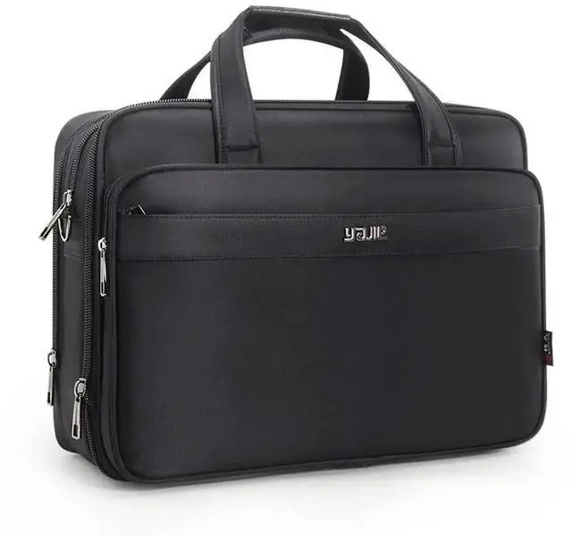 Large Briefcases For Men Work Bag Laptop Case 17 Inch Messenger Bags Expandable Office Business Mens Briefcase 17.3 Tote Carry On Black Canvas Shoulder File Portfolio Waterproof Professional Travel