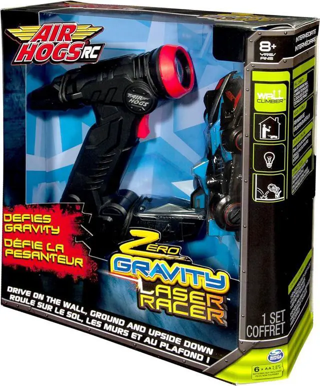 The Air Hogs Zero Gravity Laser Racer in Blue redefines RC fun by driving on walls, ceilings, and floors with incredible precision. Using advanced Wall Climber Technology, this lightweight racer uses suction power to adhere to surfaces while chasing the laser light projected by the controller. Easy to control and full of energy, it performs dynamic moves, spins, and twists that amaze every spectator. Built for smooth indoor surfaces, this car is the ultimate blend of innovation and entertainment for kids and collectors alike. Whether youre racing across walls or zooming across the floor, the Zero Gravity Laser Racer delivers endless fun and excitement.