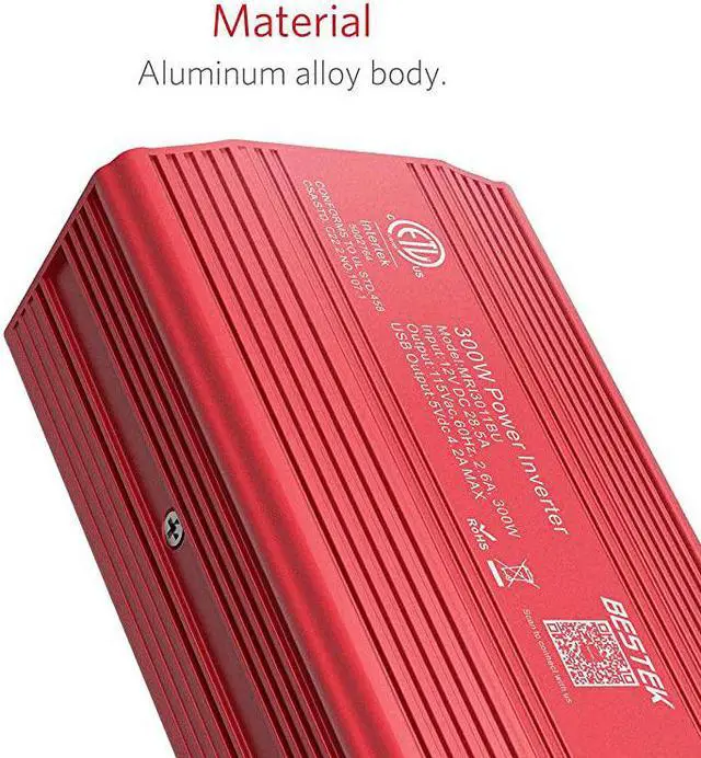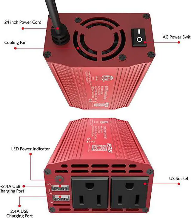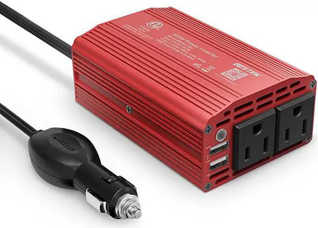 *****Advantage: America's leading power inverter brand. Provides 300 Watts continuous DC to AC power and 700 Watts instantaneous power, featuring 2 AC outlets and 2 USB ports*****Fast Charging: two 110V AC outlets for charging larger devices such as laptops and tablets, 2 USB charging ports (0-2.4A) for powering USB compatible devices, a good choice as requisite car accessories*****Ultra Compact and Lightweight: iPhone-sized design ideal for use on vacations, work trips, and camping. 24 inch cigarette lighter plug makes the power inverter can be plugged into almost any vehicle*****Multi-Protection: built-in 40 amps fuse to protect your device. Safe charging design provides protection against, overheating, under and over voltage charging, short circuiting*****Durable metal housing provides advanced protection from drops and bumps.Smart cooling fan system makes the car power inverter very silent when operating,and the fan runs faster when the dev
