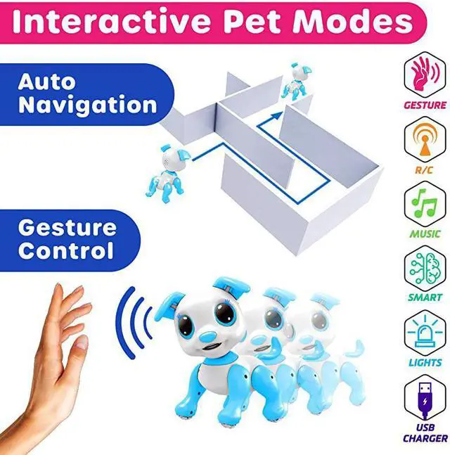 DOG PLAY MODES: Guide this remote control dog with simple hand waves in Gesture Mode; robot puppy navigates a room all on its own in